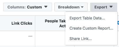 You can create a Custom Report based on your reporting selections in ads Manager – click “Export – Create a Custom Report” and Facebook will take you into the Facebook Ads Reporting section. Here, you can customize the report using the same tools as in Ads Manager, or save this report as is.