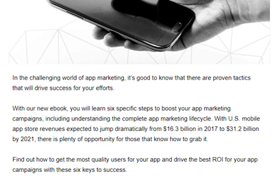 * An opening line that begins with the clichéd: “In the challenging world of app marketing …” (most readers are now already lost for good) and ends with the banal: “… drive success for your efforts”.