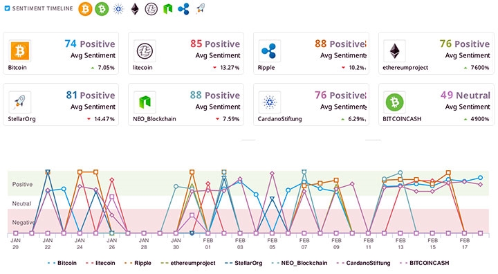 Here we see the huge engagement received by the cryptocurrency Ripple and a decent total engagement by Bitcoin. In January, and after sudden drops in the prices of cryptocurrency, as well as in relation to government regulation, the news cycle in the niche was closely related to both Bitcoin and Ripple. It is extremely interesting to note that with the high increase in the interest in the brand, we can see a direct reflection in the Total Engagement on Social Media. It is even more interesting, that Ripple had a bigger engagement on social media a month prior, noting that social media can sometimes reflect more instant changes to the interest in a brand, even before a news cycle in a niche responds to that particular interest.