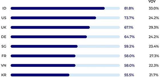 This growth is noticeable for performance marketing — especially in countries like Indonesia, the U.S., the U.K. — and industries beyond gaming, including ecommerce, IT solutions, business, education, and finance, indicating widespread adoption, according to the data.