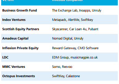 This extract from the report identifies some of the more active VCs in the Tech Track 100: