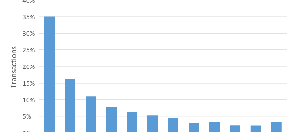 35% transactions have one interaction with the brand. At the same time, 30% transactions are done after 5 or more interactions.