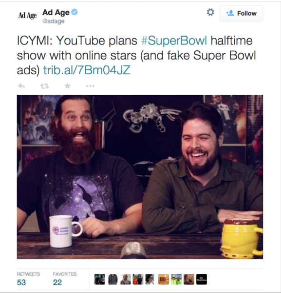AdAge uses the standard #superbowl hashtag to brand their article.