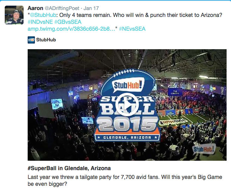 StubHub created their own hashtag #SuperBall, branding an event surrounding the SuperBowl.