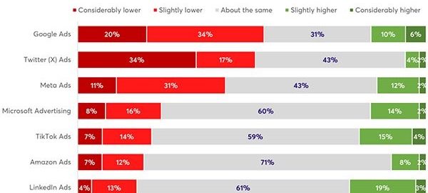 Trust in ad platforms has taken a hit in the past year, with only LinkedIn recording a net positive sentiment. Google at 54%, Twitter at 51%, and Meta at 42% recorded the largest deficits in trust. All three platforms have been struggling with issues such as trading user control for platform-side automation, reputation damage, presence of unwanted content, and general unreliability, according to the findings. Many thought platforms could do more to keep advertisers and agencies informed and feeling valued.