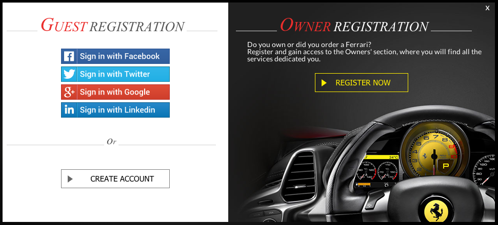 Italian luxury sports car manufacturer Ferrari, pictured below, has created a way for fans of the brand to easily interact and stay up-to-date on all things Ferrari. In addition, the organization has a dedicated portal for owners to register their vehicles and access exclusive services. The seamless and aesthetically pleasing experience allows Ferrari to unlock the power of customer identity.