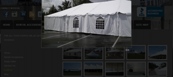 As a last example, let’s go to the Gallery tab on the site’s main navigation. A person seriously interested in booking a tent from this company would likely go to this page. While looking at pictures of the tents, what if the visitor sees one they are sure they want to book?