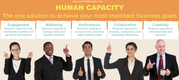 For several years now, yes…before COVID, my company had been using our data driven process to understand what is truly needed for people to perform and feel their best throughout their day. Over a few years, our data revealed to us that there were a set of capabilities that enabled human capacity. We discovered that it was, in fact, capacity that held the key to reaching some of the biggest goals an organization had. That’s when we decided that we needed to focus our own energy on helping people unlock and manage their capacity as MEvolution. Because, the only way to achieve these big outcomes, such as well-being, performance and engagement, is to focus on the whole human. As I often say, employees might change their clothes to go to work (or these days, their top for a Zoom call) but they don’t change their brain.