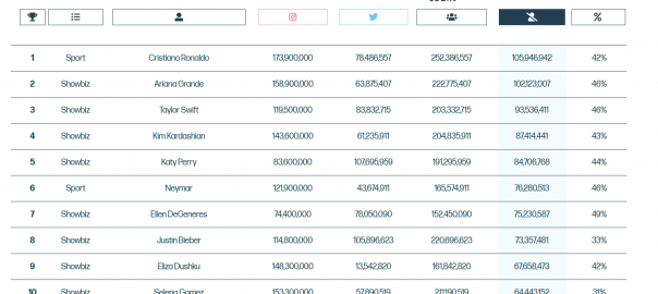 This chart shows celebrity and athlete accounts and the total number of followers per account. You can also see the percentage of fake followers, which, is way too high. But because they’re celebrities, it’s less noticeable. Now imagine these numbers on a smaller scale; it’s much more noticeable.