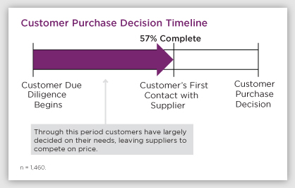 According to the Corporate Executive Board, an insight and technology company, prospects are already 57% through in the buying process when they contact a sales pro for more info. As a salesperson, that stat should scare you. Thanks to this thing called the Internet, buyers today are doing research about your products and services before they even pick up the phone (or more likely, send you an email). Sales reps are brought in later in the process—they’re entering the conversation when the buyer already has a firm opinion on what your company has to offer and how you can help solve their problems.