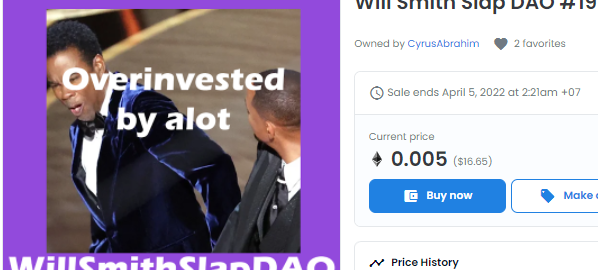 A Will Smith slap token with a buy now price of 0.005 ETH