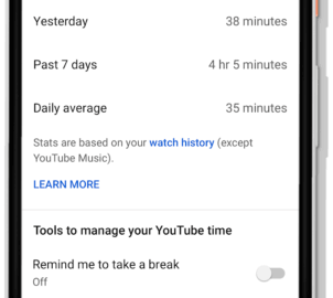 YouTube is rolling out more features designed to help users “take charge” of their digital well-being. Starting today, the ‘Watch History’ screen within a YouTube profile’s account will show how much time the user has spent on the app that day, the previous day and over the past seven days.